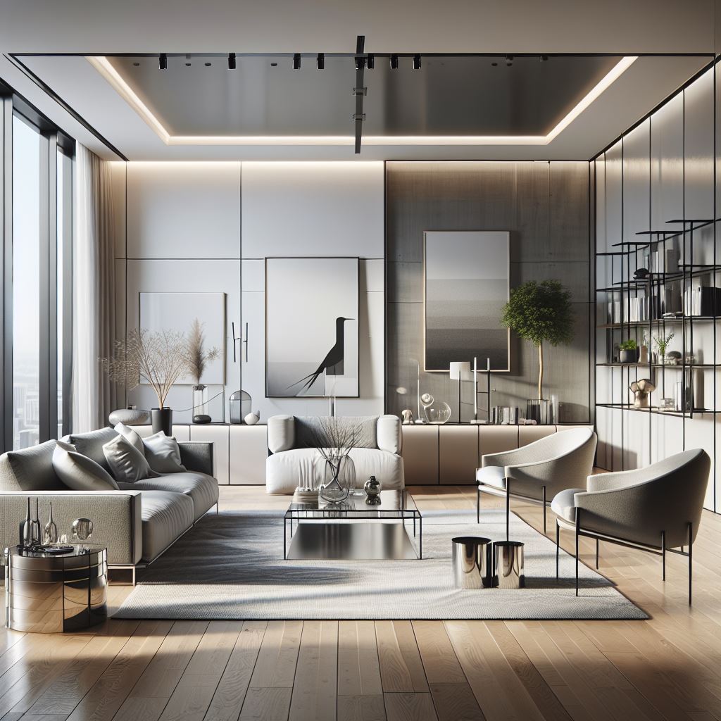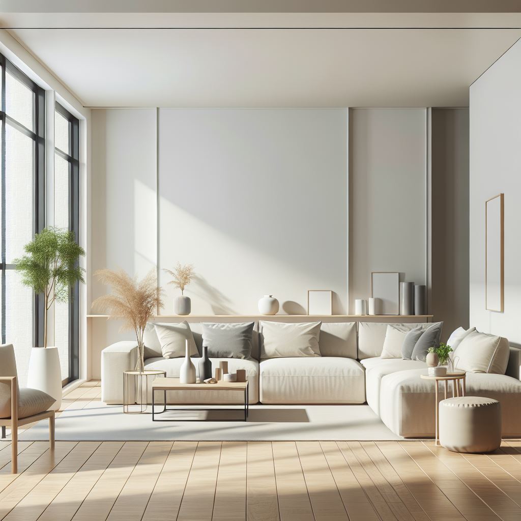 - Enkel og renset farvepalet, ofte domineret af hvide og grå nuancer.